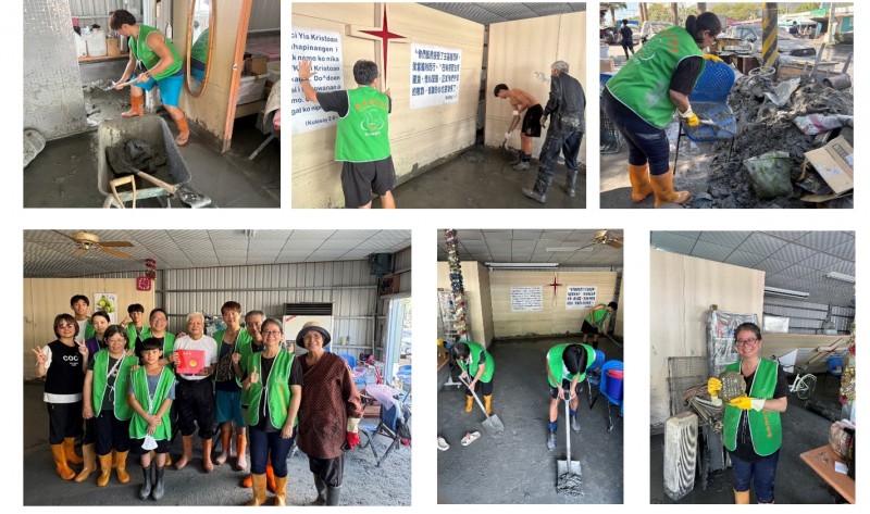 颱風泥流肆虐後,據點辦公室與物資倉庫全數被泥水覆蓋,連冷凍櫃也遭泡水損壞,辦公設備全毀。然而在教師節連假期間,協會志工隊成員與慈恩教會弟兄姊妹們在協會理事長與慈恩教會彭孟緝牧師的帶領下,同心協力,不畏艱難,投入清淤整理工作,讓災後重建得以邁出第一步。