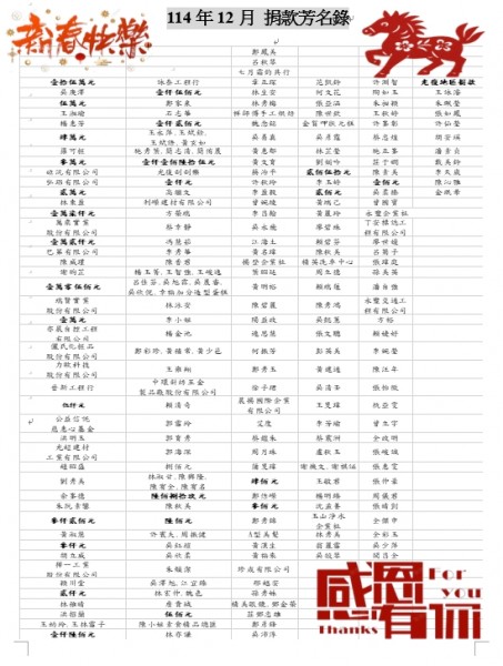 114年12月 捐款芳名錄