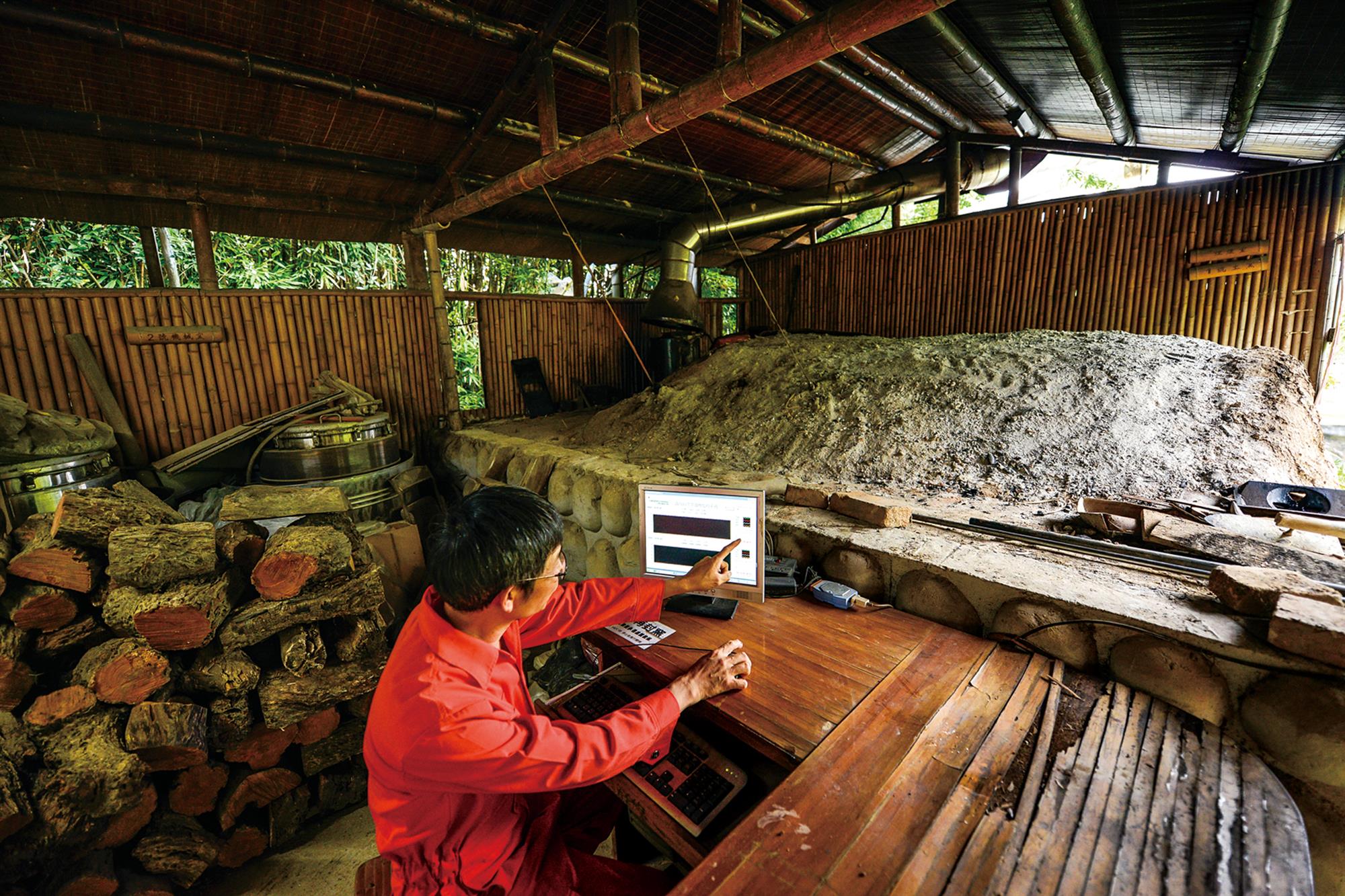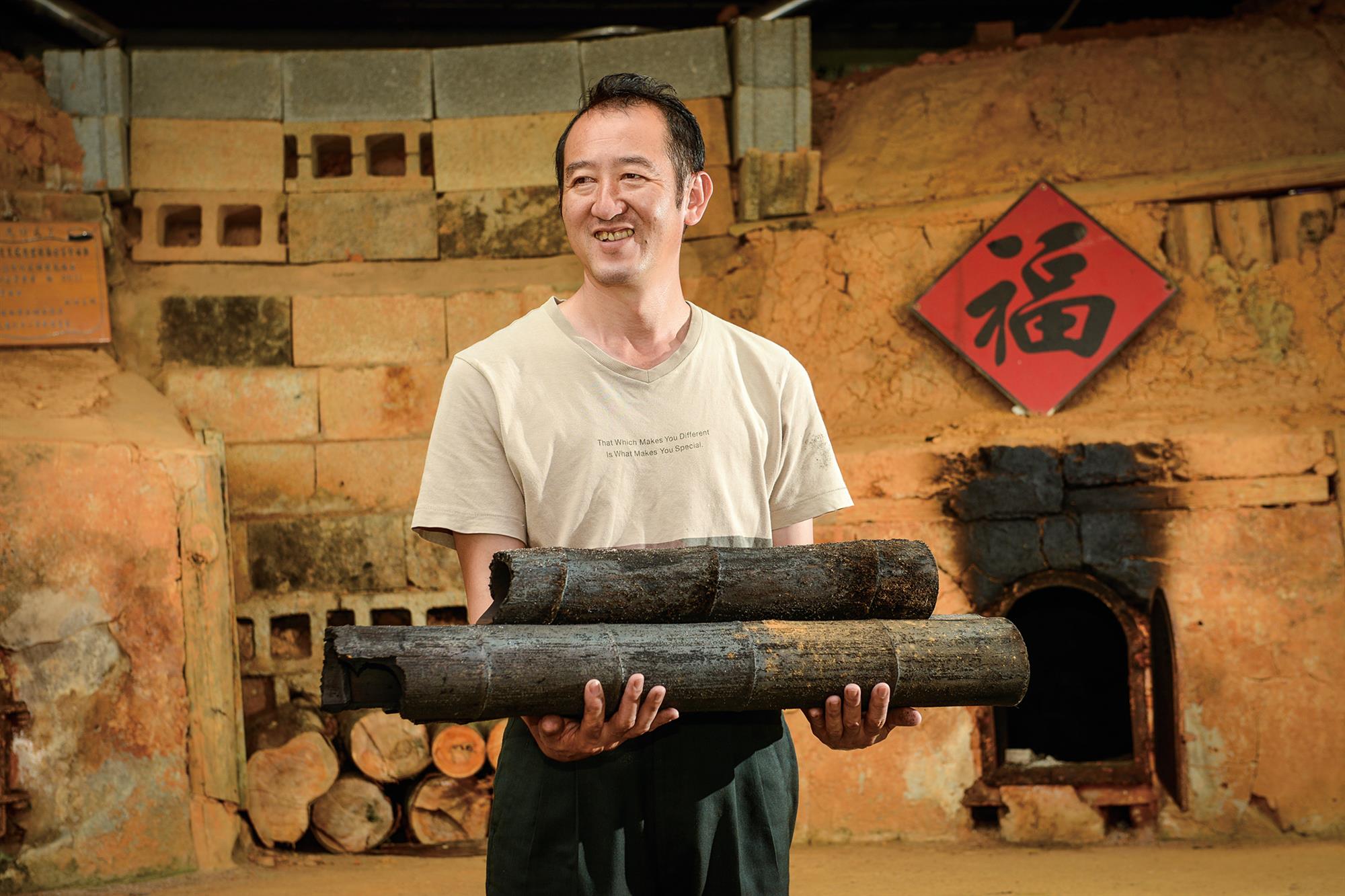 文‧陳群芳 圖‧莊坤儒 春天炒嫩筍、夏秋涼拌筍、冬季喝筍湯,竹子全年生長,讓我們四季都有美味的筍子吃。台灣地形多變,從平地到高山,都能見到竹子的身影,中海拔的山地更是竹子生長的絕佳環境,竹子生長快,行話說:「一年成竹、三年成材」。在林業資源逐漸缺少的現在,以竹代木,儼然成為全球趨勢。古人拿竹子直接當柴火燒,現代人則將竹子燒成竹炭,究竟竹子要怎麼燒成炭,讓我們來一窺綠竹變黑鑽的秘密。 相較於木炭燒製的悠久歷史,台灣的竹炭卻是誕生於921大地震後。過去台灣生活中隨處可見竹子的身影,舉凡房屋建材、桌椅櫥櫃、涼蓆斗笠等,台灣出產的竹製品,做工精細、品質優良,曾經在外銷產品中佔有一席之地。 民國八○年代,隨著塑膠製品興起,竹製品需求下降,為降低人力成本,竹品加工廠選擇外移,竹產業逐漸蕭條。民國88年921大地震重創竹林茂密的中台灣,竹林根系鬆動、土質流失,對竹產業無疑是雪上加霜。 為替921災區竹農開闢新出路,重建傳統竹產業,2002年農委會結合林務局、林業試驗所、工研院組成研發團隊,推動「竹產業轉型與振興計畫」,希望透過竹炭帶領台灣的竹產業走出一條新的路。 三顧茅廬,取經日本 日本對竹炭的研究已行之有年,竹炭在日本被視為黑鑽石,竹子多孔隙、耐高溫的特性,在燒製之後具有吸附、改善土壤水質、釋放遠紅外線的功能。於是,研發團隊遠赴日本取經,希望邀請日方來台傳授竹炭窯的建造及燒製技術,但卻一再碰壁。工研院的陳文祈博士堅持不放棄,多次前往日本拜會日本竹炭之父鳥羽曙,甚至在下雪的冬天等在鳥羽曙的家門口。陳文祈的誠意終於打動他,來台指導竹炭燒製技術。經過研發團隊不斷地努力,結合科技與傳統技法,蓋了全台第一座竹炭窯,還研擬出竹炭燒製的標準作業程序,成功燒出首批竹炭。 傳統竹農轉型竹炭達人 研發成功後,政府便計畫讓竹農參與技術轉移。位於南投的武岫竹炭窯便是早期加入技轉的先鋒之一。自民國91年開始蓋窯燒竹炭至今由第二代接棒,現任窯主林建勳說:「燒竹炭看似簡單,但竹子的挑選、砍剖、綑綁、堆疊……眉眉角角仍需要經驗的累積。」 中台灣盛產的孟宗竹桿粗肉厚適合燒竹炭,但只有四年以上的成竹才能作為竹炭燒製的材料。要在茂密的竹林裡砍下需要的竹子而不影響其他竹子與竹筍的生長,憑的就是多年種竹的經驗。 同樣位於南投的青竹文化園區裡的兩座青筠窯也是先期技轉的竹炭窯。園區負責人陳靖賦原本從事竹藝品設計,為了解創作材料的特性而一頭栽進竹子的世界,「我喜歡竹子挺拔、氣節高尚如翩翩君子。」陳靖賦浪漫地說。他不忍見台灣竹業沒落,於民國86年號召竹農成立青竹文化園區,期望延續台灣的竹文化。 金絲竹、黃金竹……園區內種植了多達一百種以上的竹子,讓工研院的研發團隊找上陳靖賦,邀請他參與竹炭燒製的技轉,科技化管理的青筠窯於是誕生。 簡單,不簡單 竹子空心長條狀,為增加熱傳導效率與竹窯的生產量,必須將竹子剖開切成片狀,一片片疊好後再用棉繩牢牢綑綁,讓竹片彼此緊密貼合。但竹子不是這樣就能燒,還必須經過煙薰、氣乾,讓竹子的含水量下降至15%,前後大約需要3個月,才能正式入窯燒製。 青筠窯的窯體是門小身體大的圓拱型,窯門僅120公分,窯體最高處也只有150公分,疊窯時師傅們必須不停彎腰入窯,還得在矮小的窯裡將竹子仔細疊好,一窯必須放入2,000公斤的竹子,十分考驗體力與技術。 竹子入窯後,必須先用小火預熱四到五天,累積窯體的熱能,接著就要連續7天不停地攻火,讓窯體溫度上升至600度以上才能進行14天左右的封窯,「其實400度就能燒竹炭,但溫度越高,竹子炭化的程度越好,越能發揮竹炭的吸附效果,所以我們堅持要達到600度。」陳靖賦說。 科技加持,綠竹翻身 傳統的土窯要如何控制溫度,實在令人好奇,秘密就在土窯上方的三條傳輸線。研發團隊在竹炭窯裡架設溫度計,透過傳輸線連結到炭窯旁的電腦,由工研院遠端監控,陳靖賦說:「燒窯時每15鐘量測一次,溫度曲線必須符合規定,否則這批竹炭就只能全數作為農業用途,不能製成其他產品。」 選用在無汙染環境中生長的竹材,且燒製符合標準的竹炭,才能獲得農委會的CAS台灣優良林產品認證。以科技方法管理傳統的竹炭燒製,不僅穩定竹炭的品質,更讓台灣燒製竹炭的專業技術在國際打響知名度。2005年日本舉辦世界博覽會,台灣雖然不是國際展覽局會員國,卻因為竹炭科技研究豐碩,主動邀請台灣生態材料產業發展協會參展,會上展示了竹炭紡織品、竹炭海水淡化機等多項台灣竹炭的研發成果,「我們以世界首創的竹炭電容代步車供遊客在展場上騎乘整天,優異的蓄電力讓全場驚豔。」陳靖賦驕傲地說。 台灣竹炭在世界博覽會中亮眼登場後,吸引了其他國家的目光,台灣各地竹炭相關領域的專家學者都紛紛獲邀前往美國、日本、泰國等地分享竹炭技術,陳靖賦就是外交部國合會派往中南美洲輔導當地竹產業的一員。「過去,台灣的竹產業專注在將原竹直接製作成產品的一級加工,當人力相對低廉的中國大陸、東南亞崛起,我們很快就被取代,但現在台灣的竹炭反而成為其他產竹國家爭相學習的對象。」陳靖賦略顯驕傲地表示。 林建勳回憶這十多年竹產業的變化,「起初,我也只是燒竹炭,沒想到一路上有越來越多大學、企業加入,